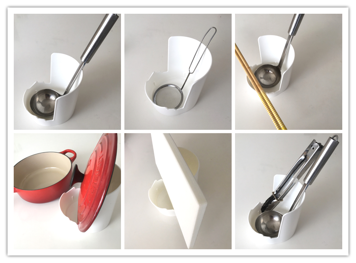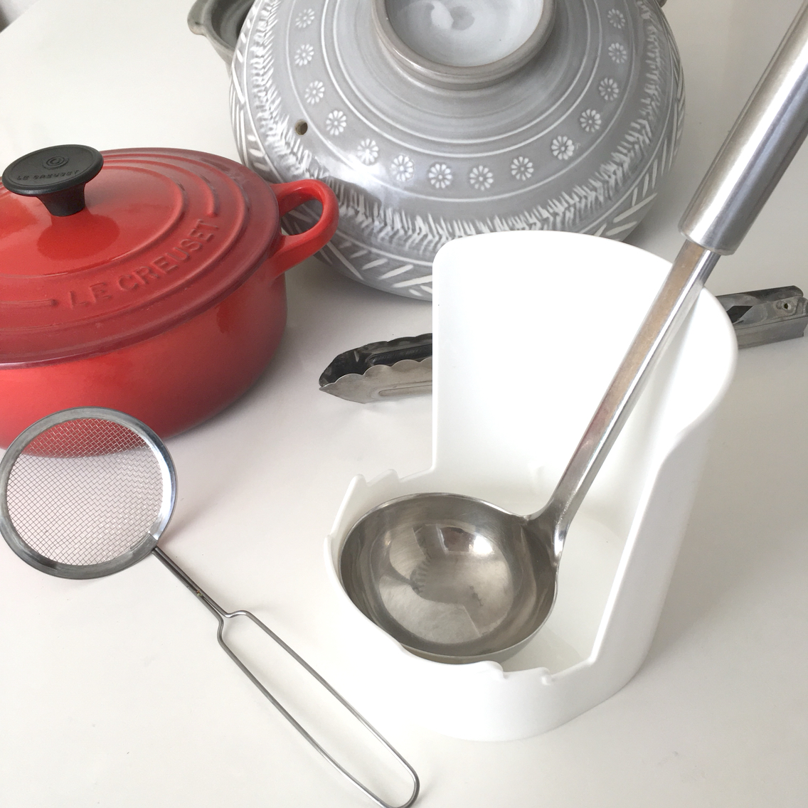 トングやお玉、菜箸置き場にいつも平皿を使っていて場所を取っていました。