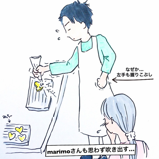 ふわっとクリームを絞るところ、全力で握り潰すように腕力で絞り出す…(-。-;