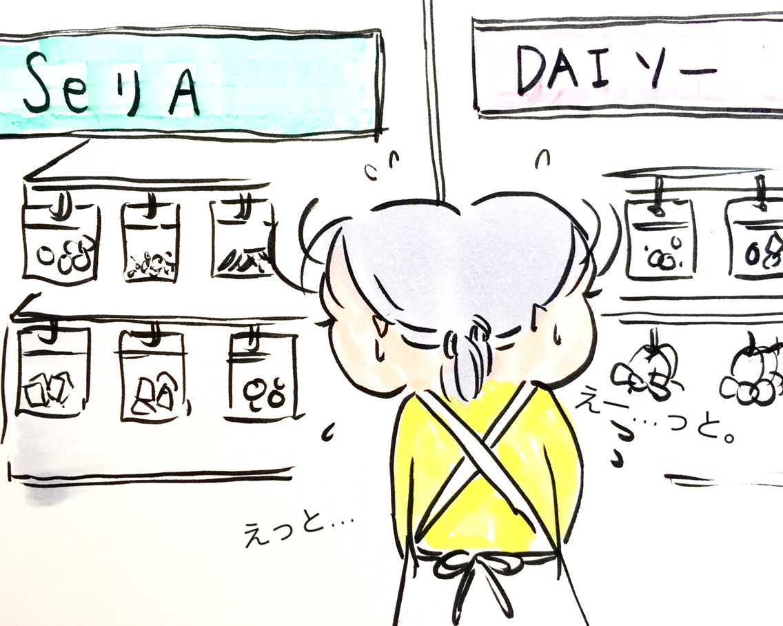 このパーツ、どこの100均だったけ?