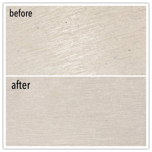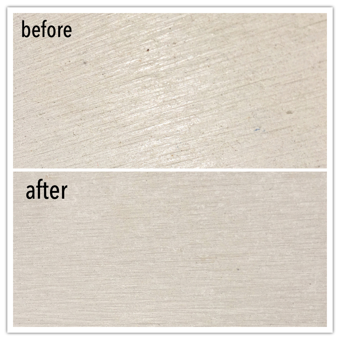 分厚いバスマットを洗わなくても清潔、スッキリ、サッパリ!の使い心地に大変満足している珪藻土マット。 万能ですが、吸わなくなったらお手入れサインです。 付属についていたこのヤスリで… 表面を撫でるように擦ります。 水を吸わず、弾くようになって水滴が乗っていたマットが… ヤスリで擦ると。 ぴたっっと水分を吸着して消えてくれる感覚が戻りました! |