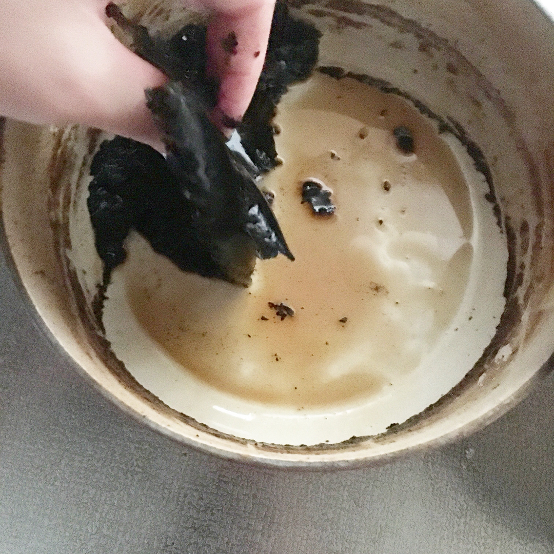 なんとか頑張って焦げを取りたい。
