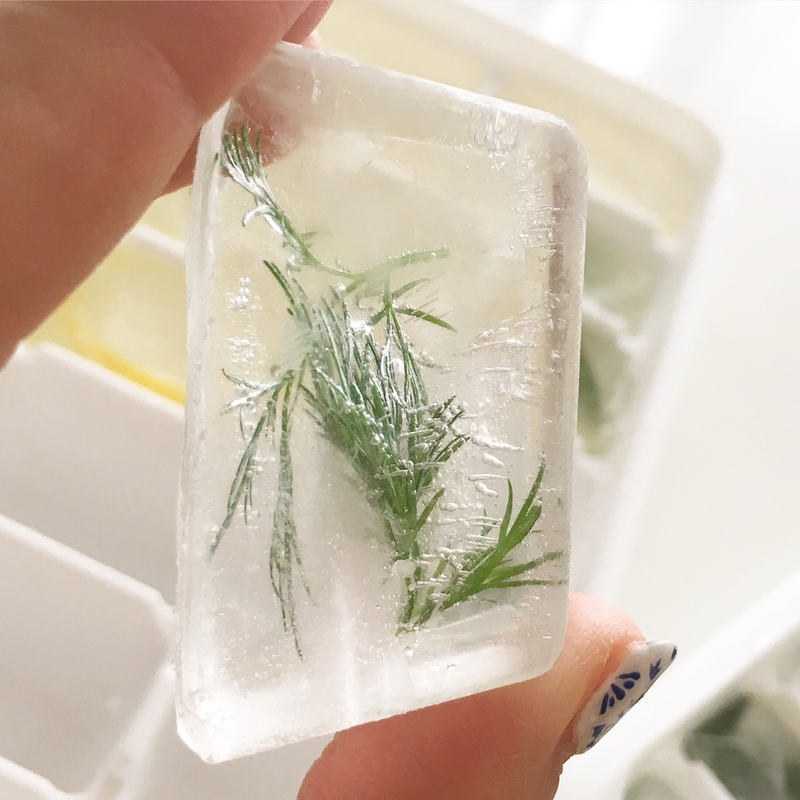 中の物が浮いてしまわないように3分の1程水を入れて、植物達を入れ冷凍庫へ。