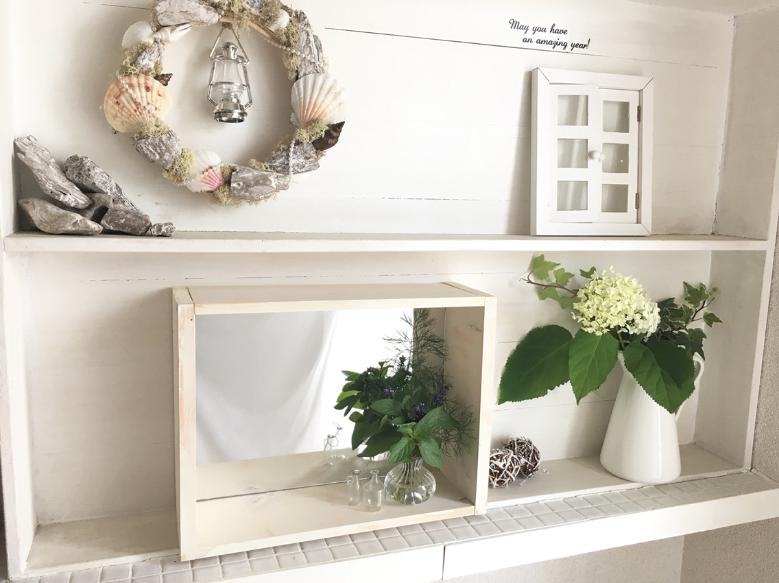 ミラー付きのウッドボックスです♫