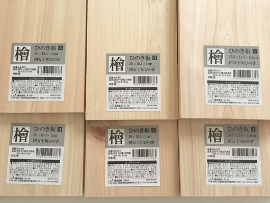 先日買ったセリアの檜の板が…