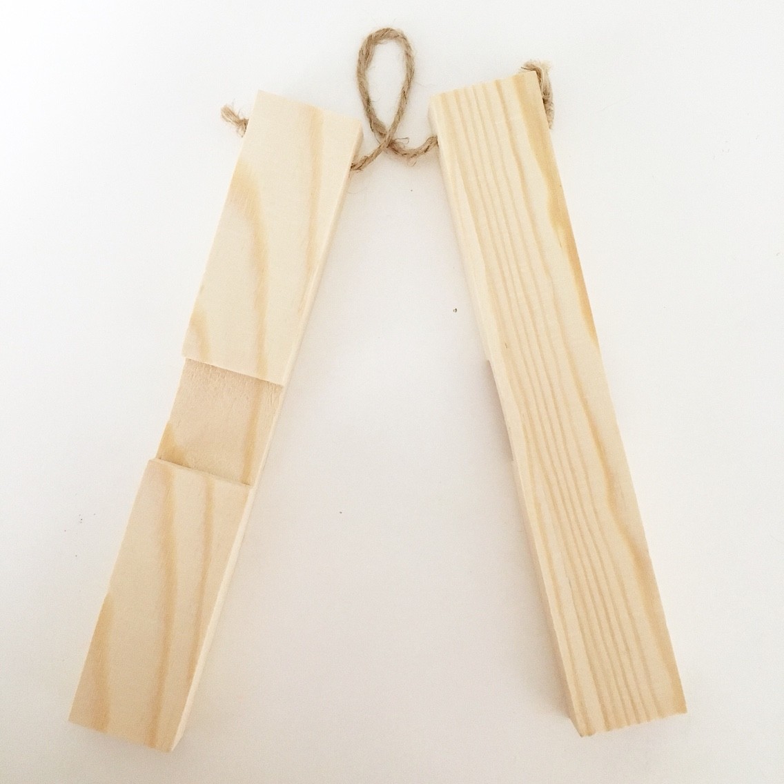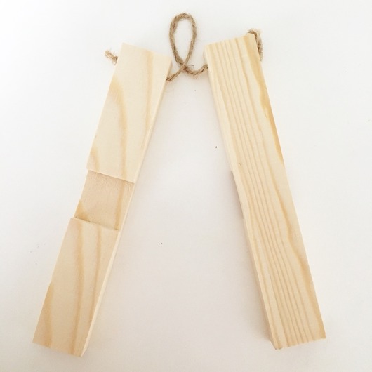 溝付きの木片2つが紐で固定されてます♫