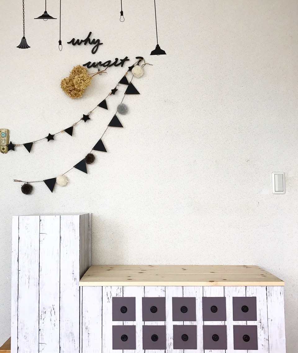 本当は2段と3段のボックスをブラケットなどで固定するといいのですが…どちら向きに使うか分からないので今回はただ置いてあるだけ。