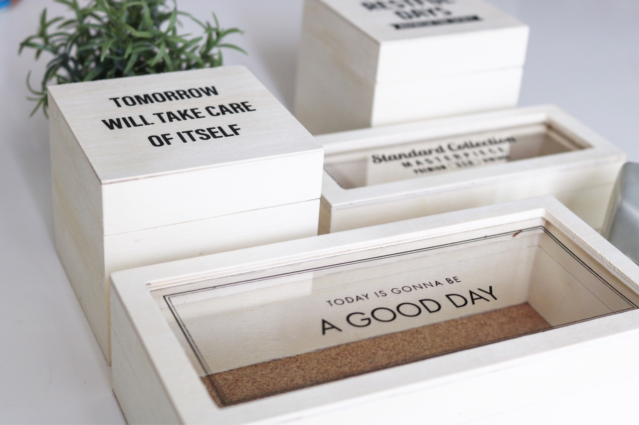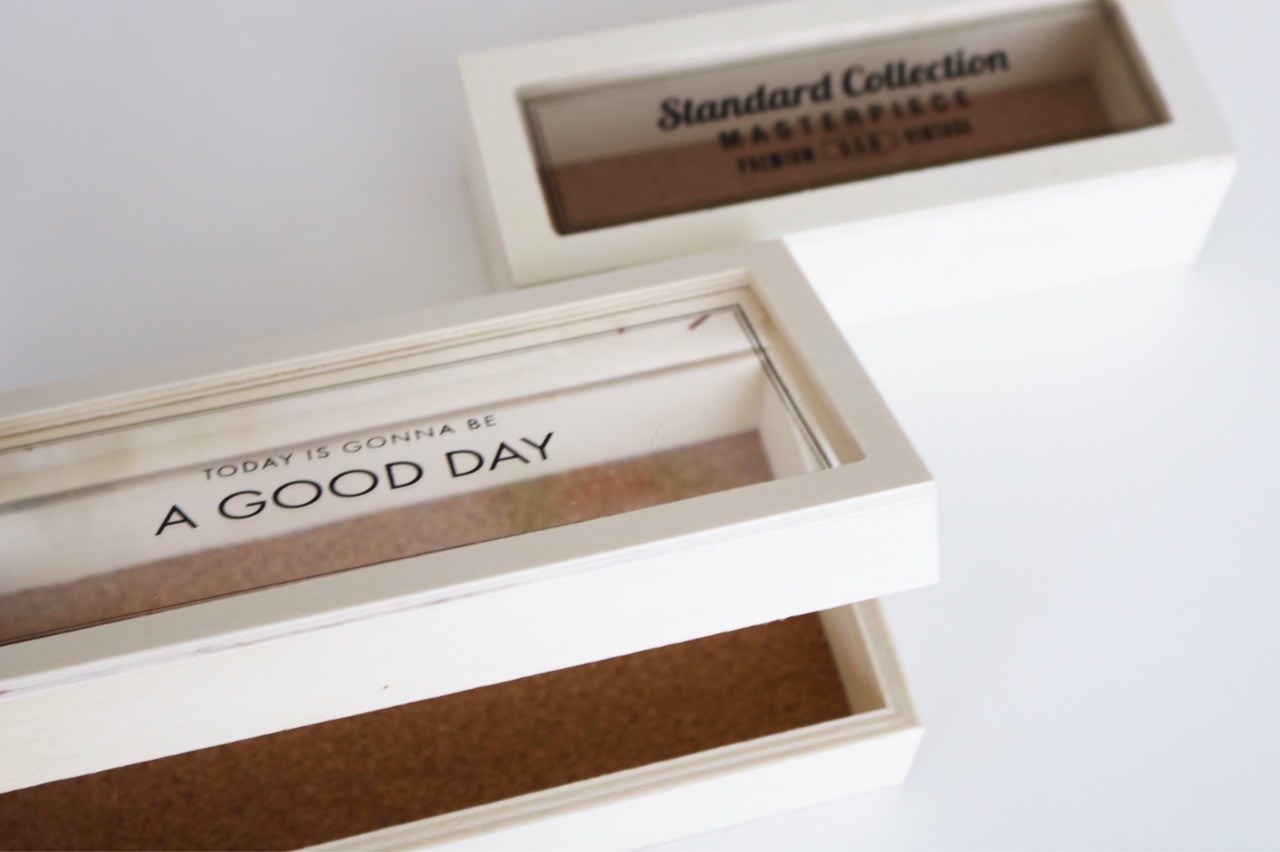今回の木箱は、真ん中が透明板で中身が見えます。