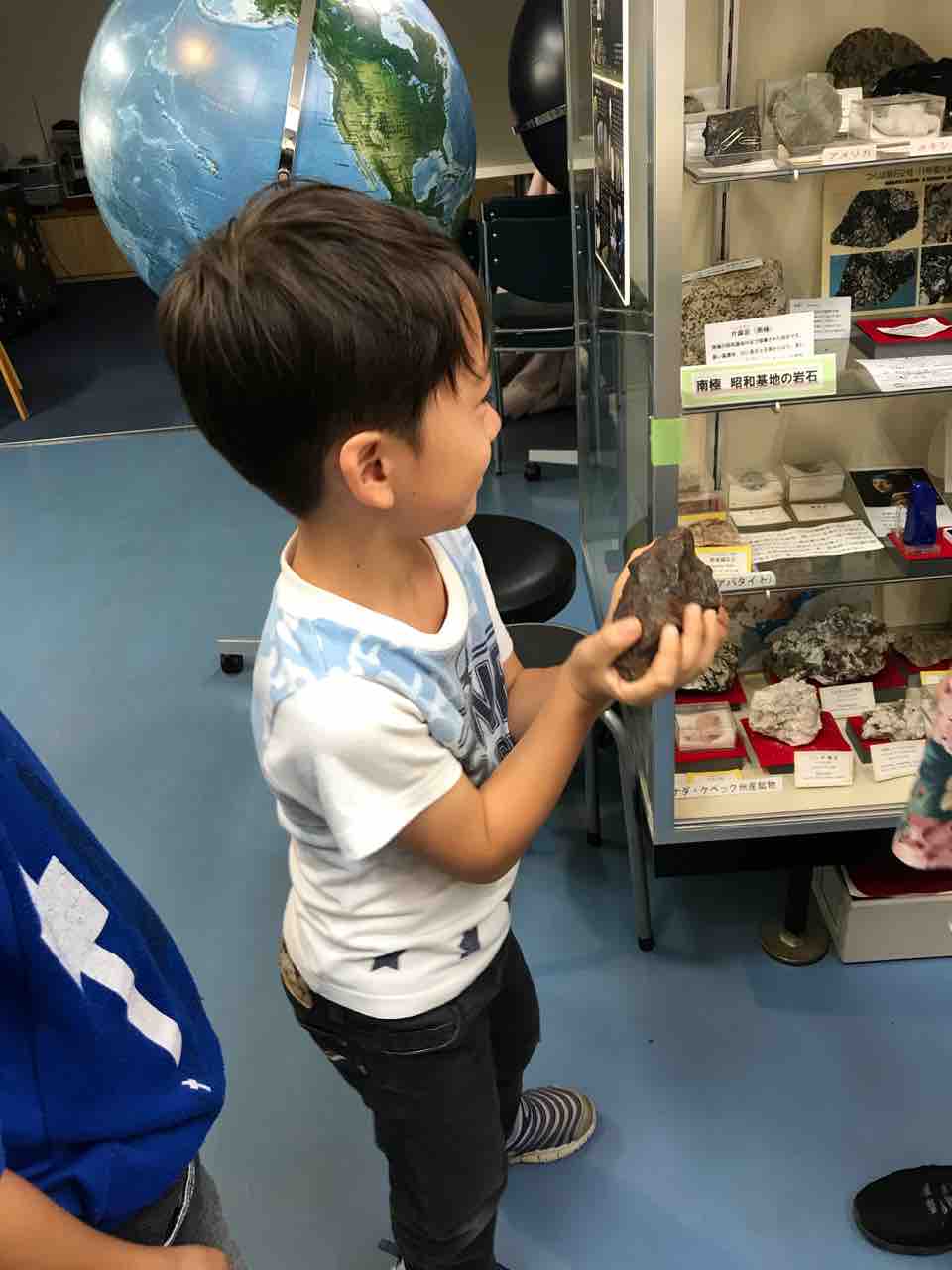 なんと、長男、貴重な隕石を持たせてもらっています…!