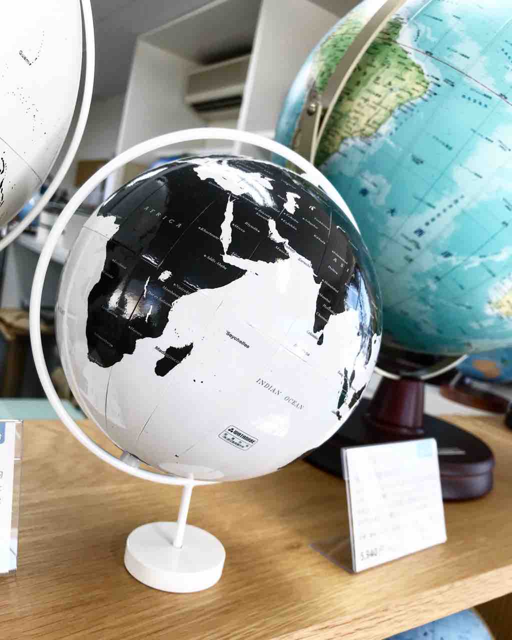 インテリアにも人気の白黒地球儀。