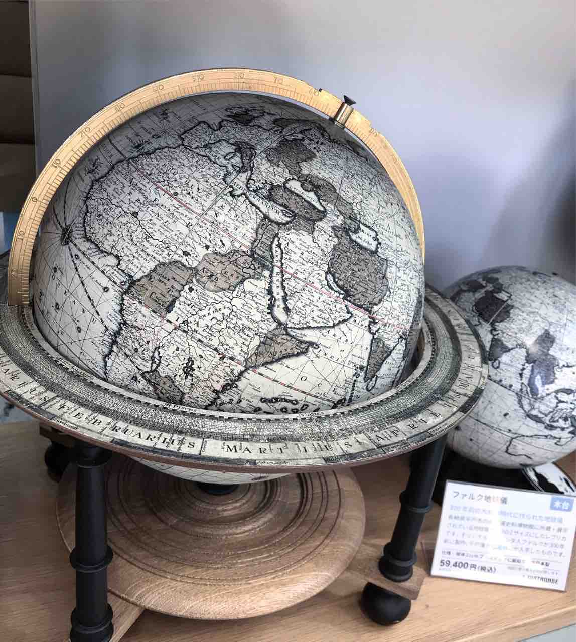 見慣れた教材の地球儀の他、レトロなアンティーク調の物や