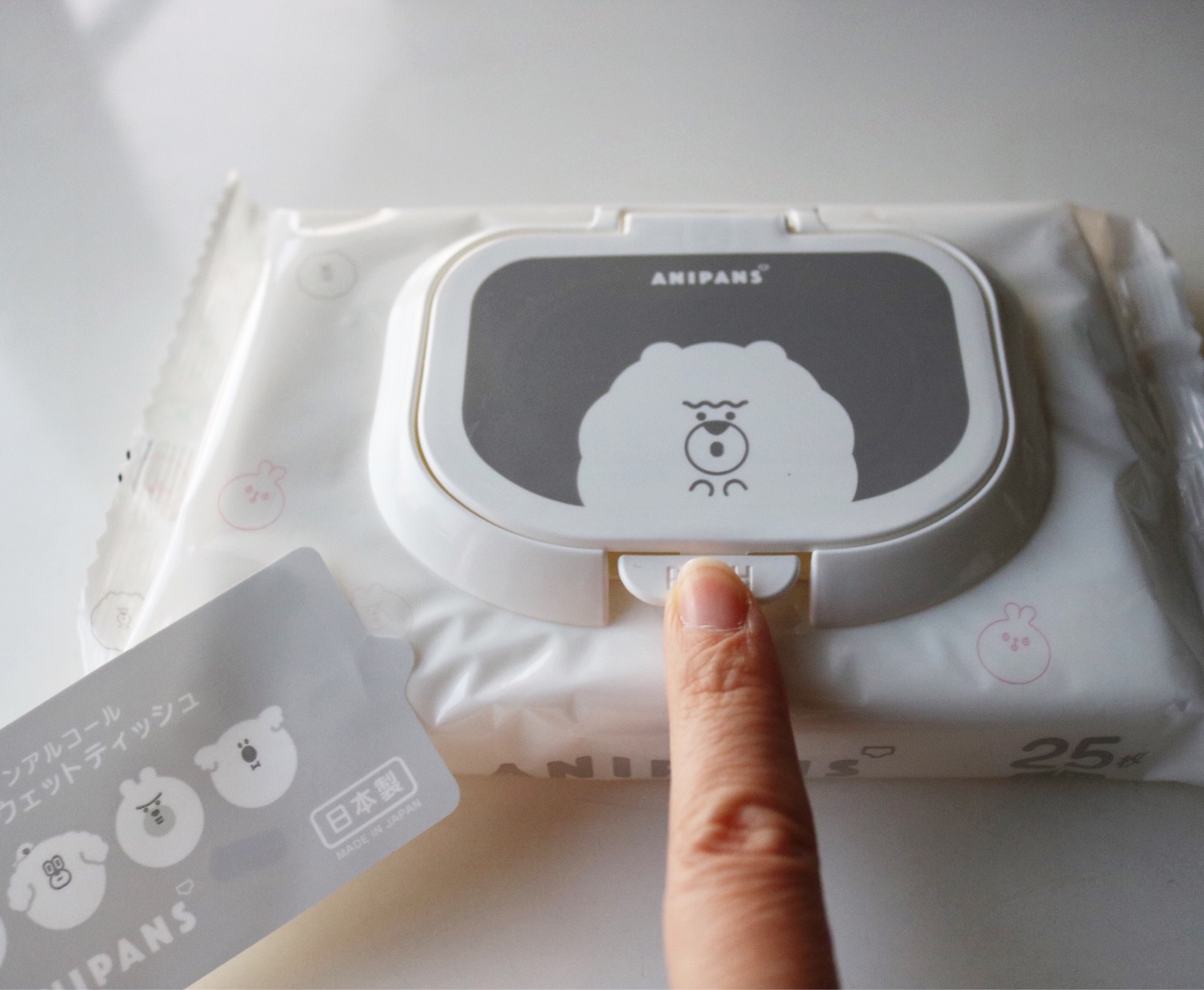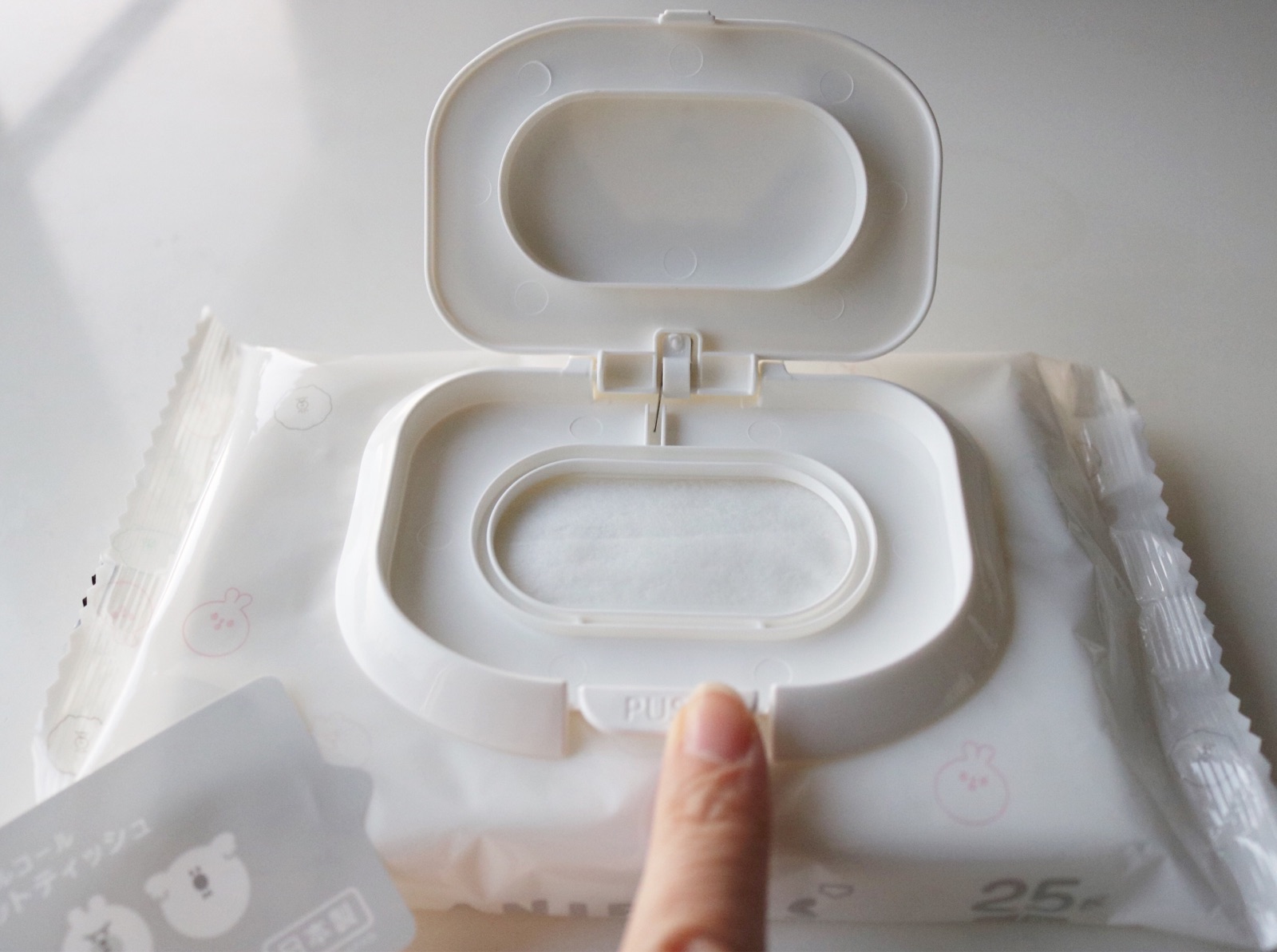 蓋はこんな風に色んなウェットティッシュに貼り付けて使います。