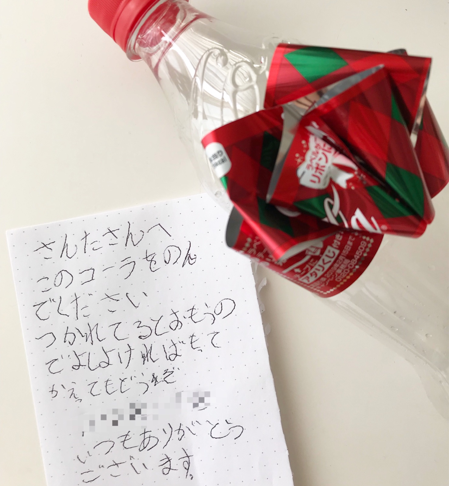 就寝前、サンタさんの大好物はコーラという事でお礼はこちらを用意していました。