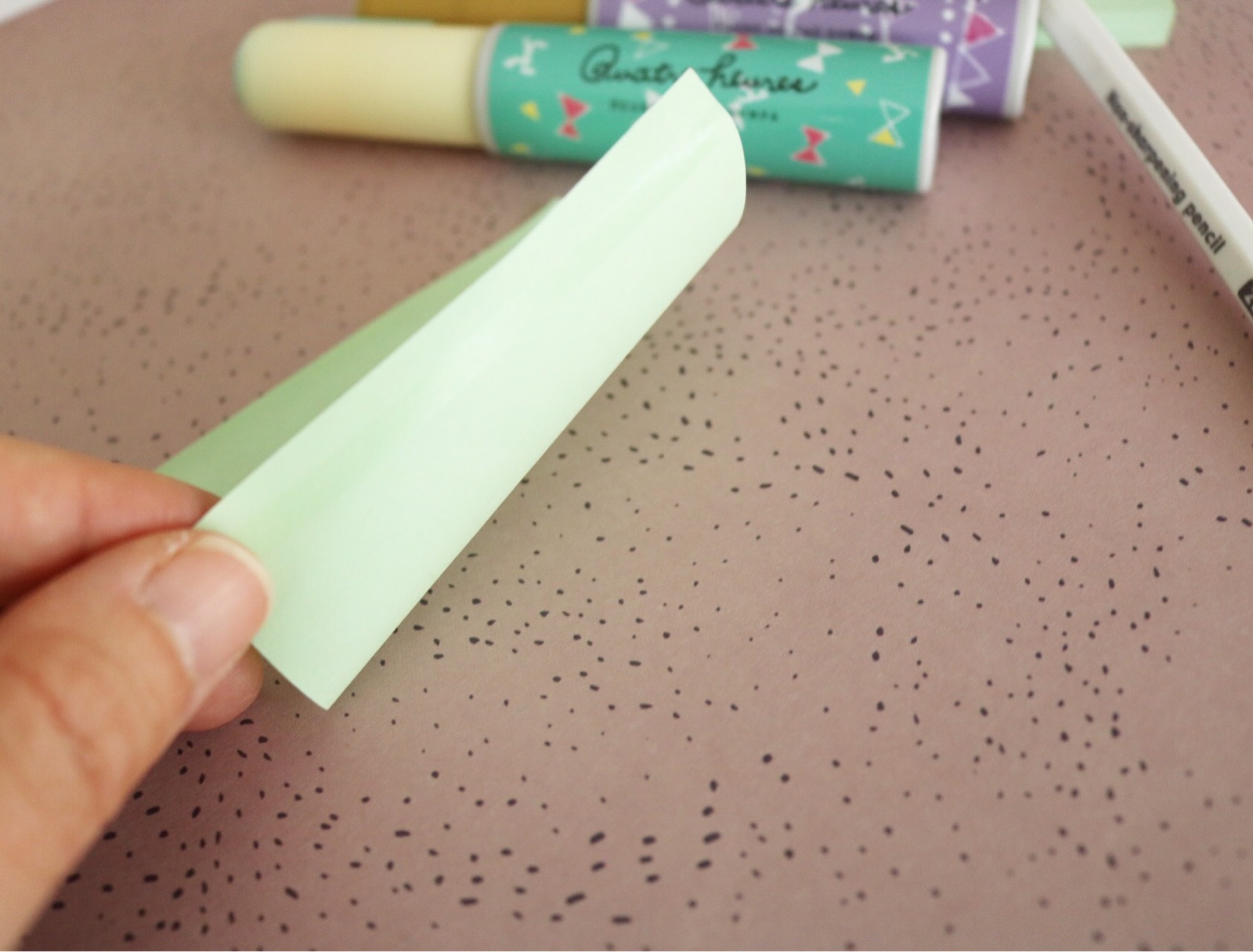 パターン1→弱粘着でふせんに(ペンで付けた後のりを乾かす)
