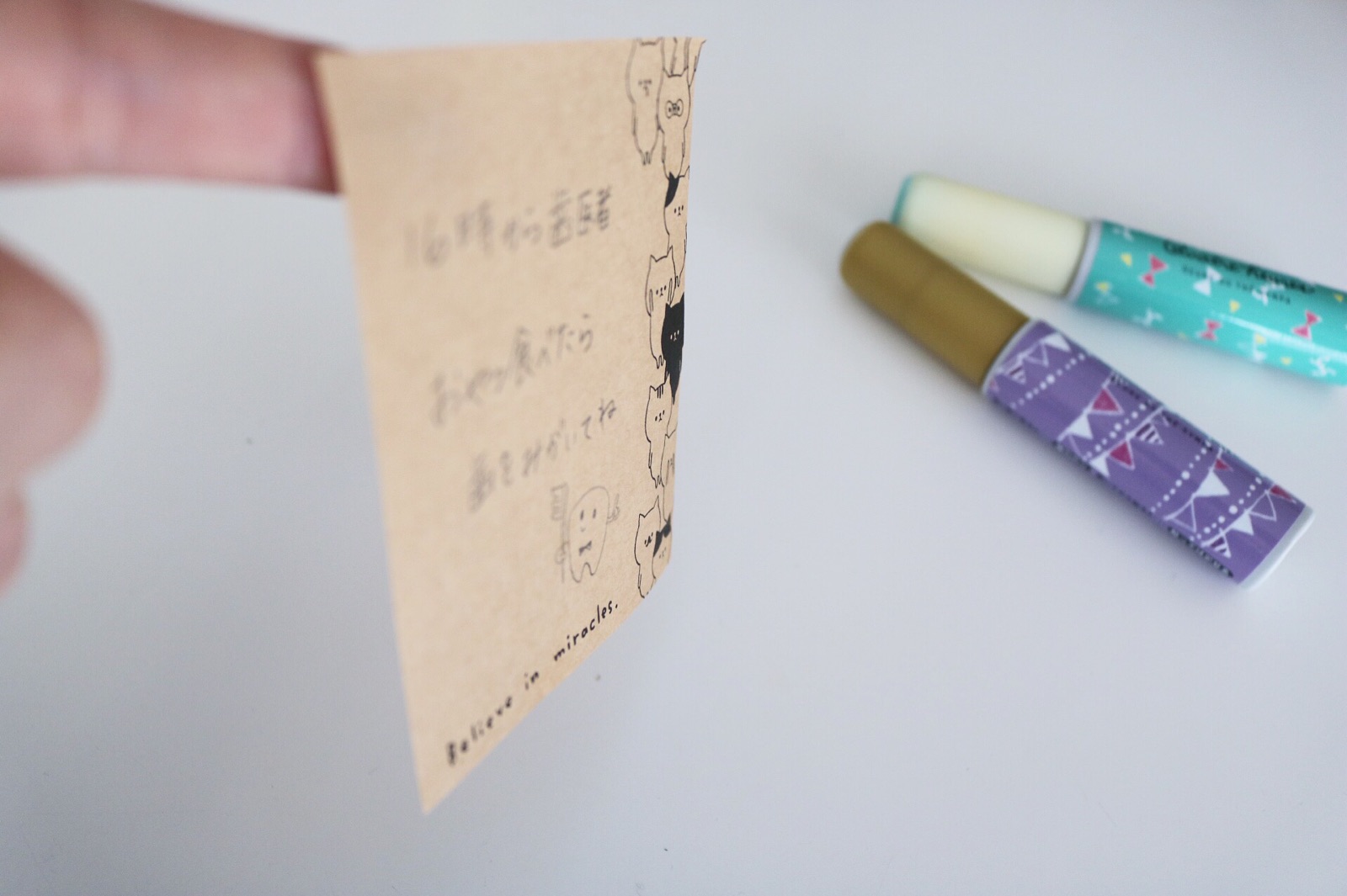 普通の紙に書いたメッセージメモの裏に