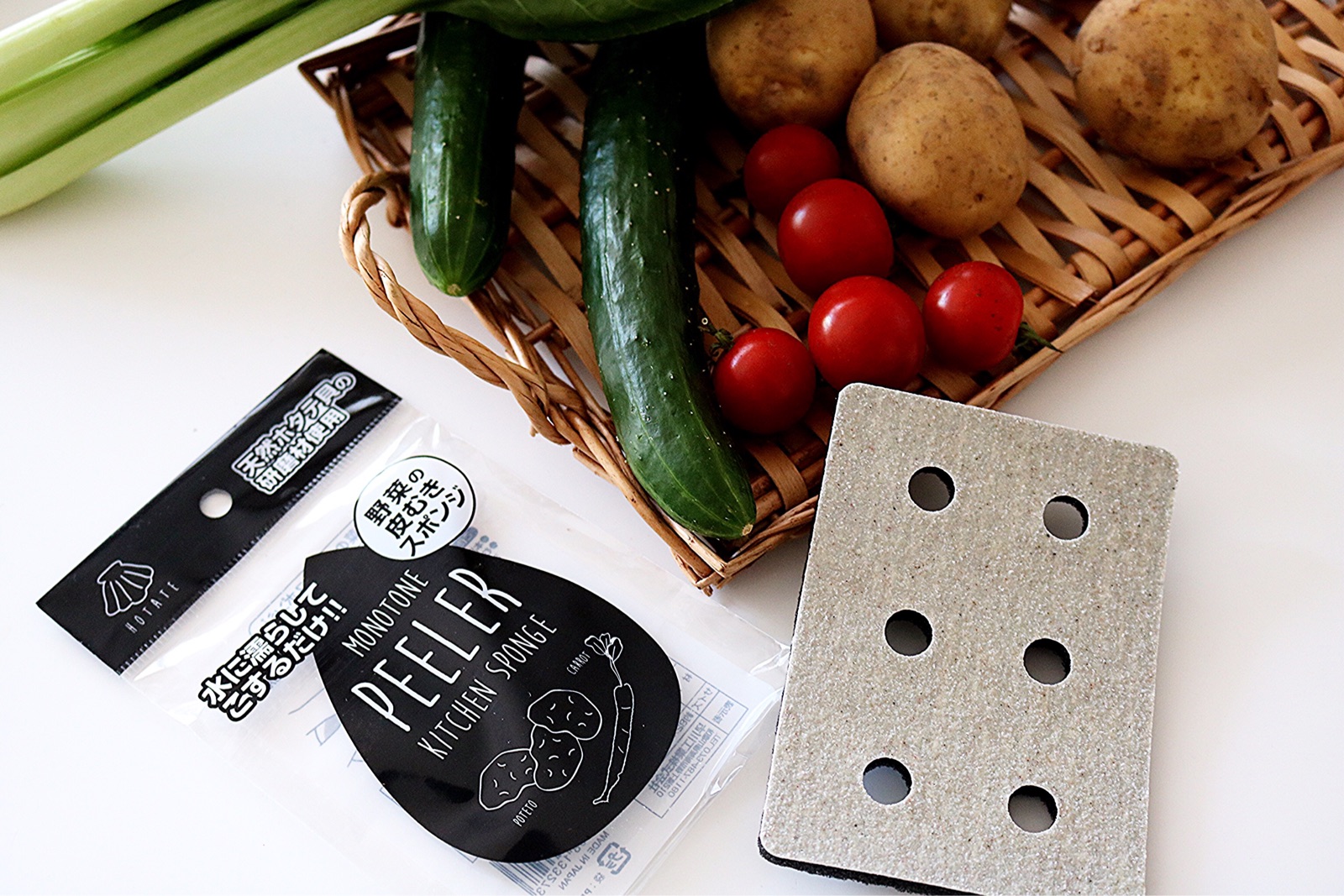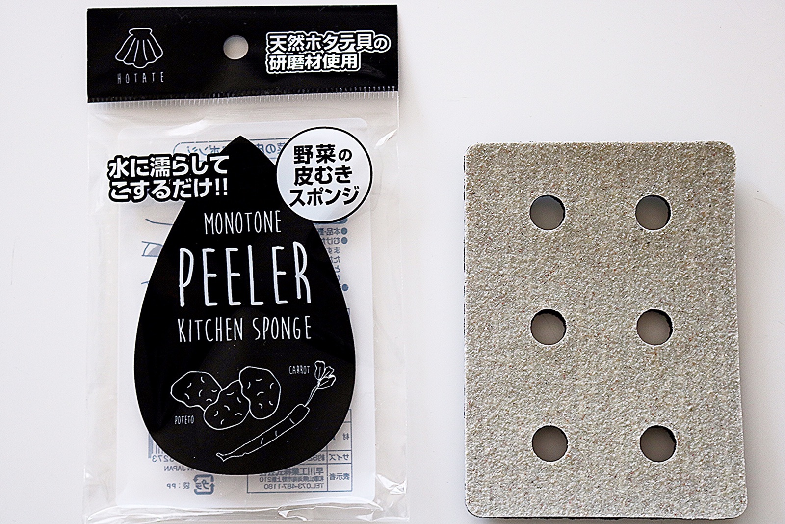 「野菜の皮むきスポンジ」(モノトーンキッチンスポンジピーラー)です