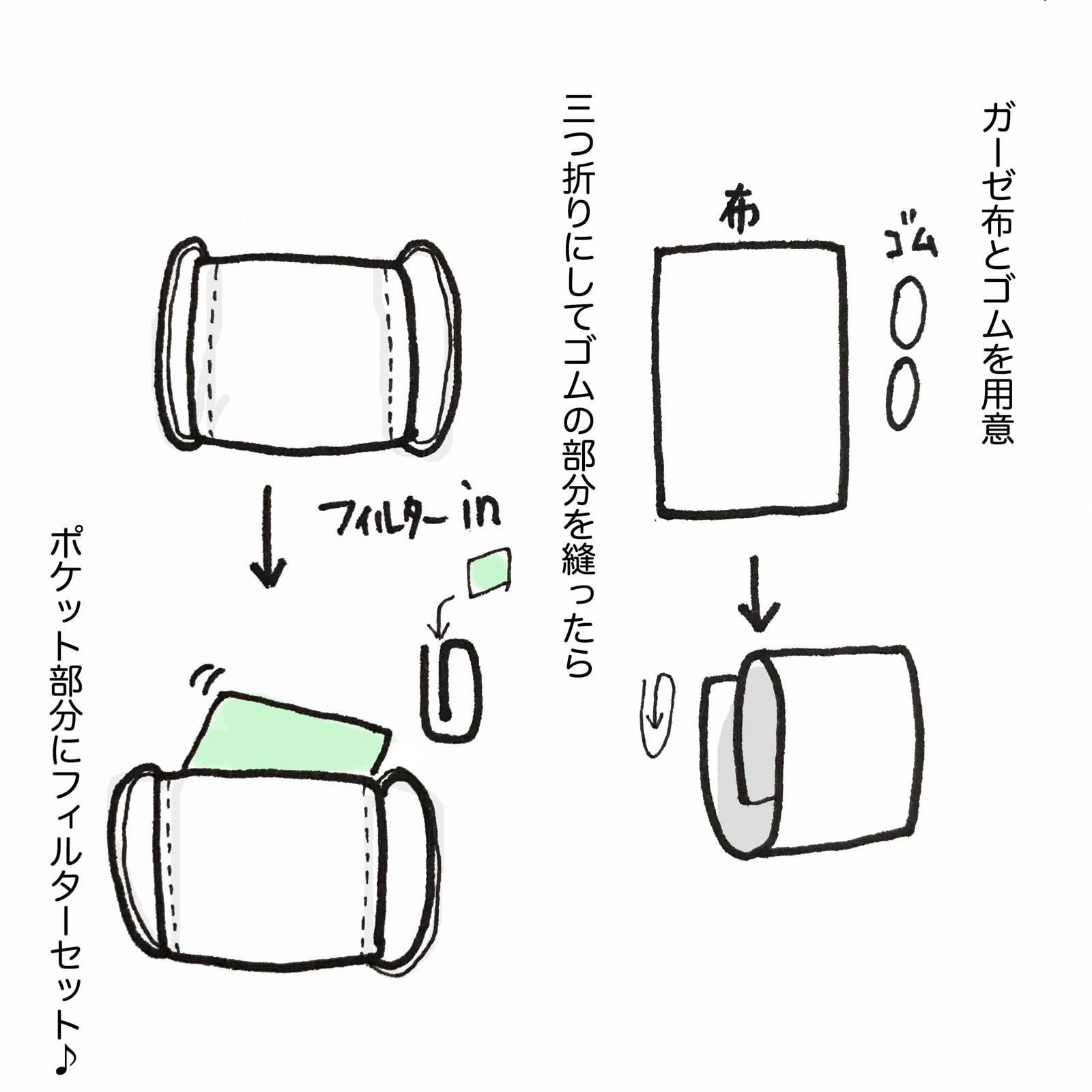 布マスクを洗う時にフィルターを外して洗えば繰り返し使えるかな。