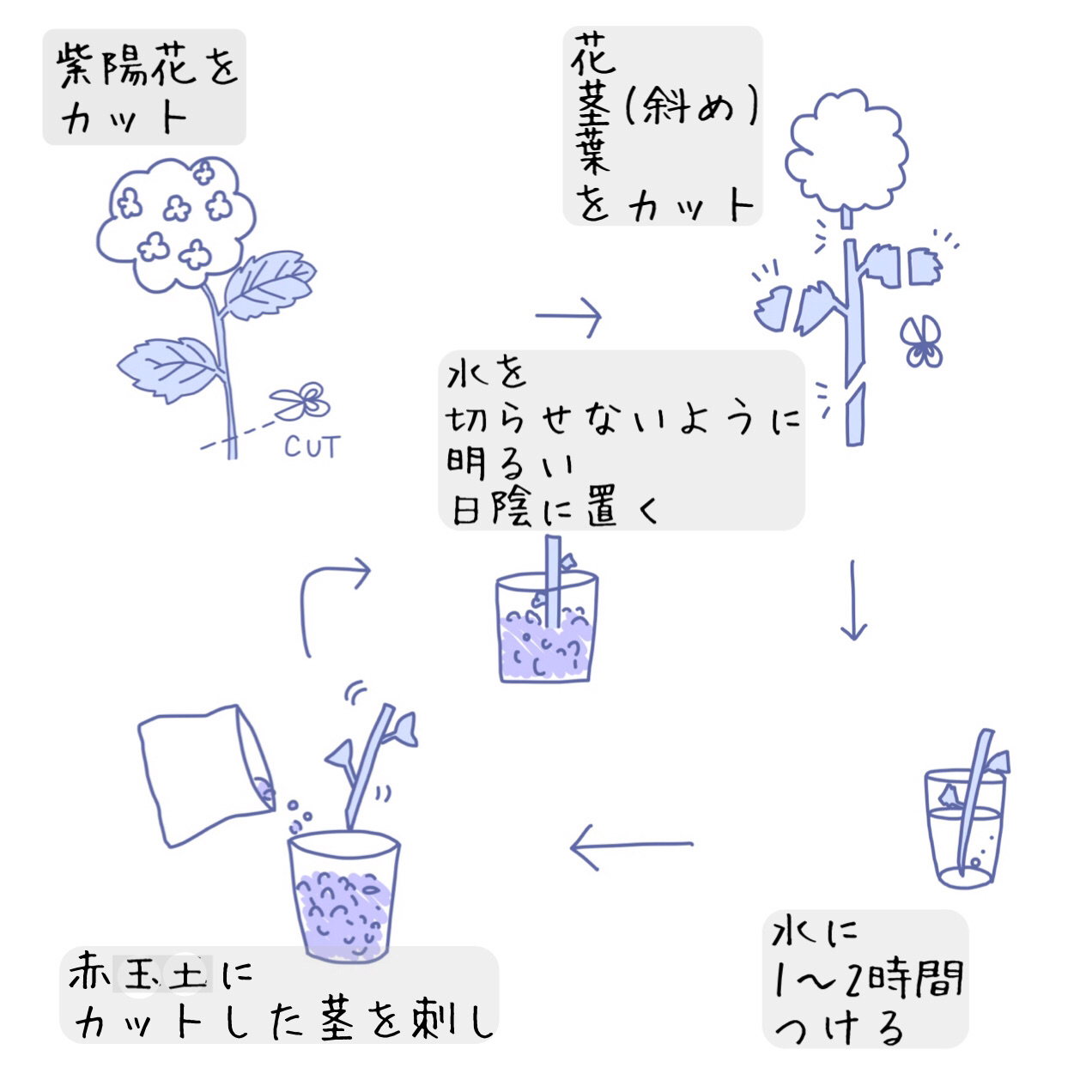 紫陽花は簡単に挿木で増やせるよ。と聞いて