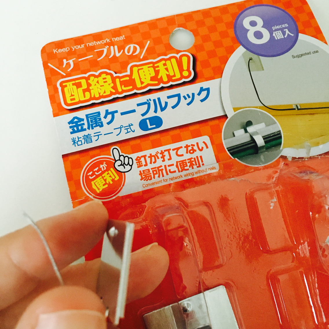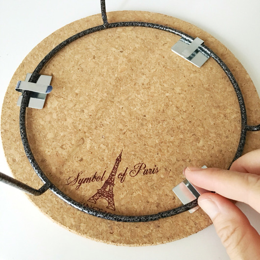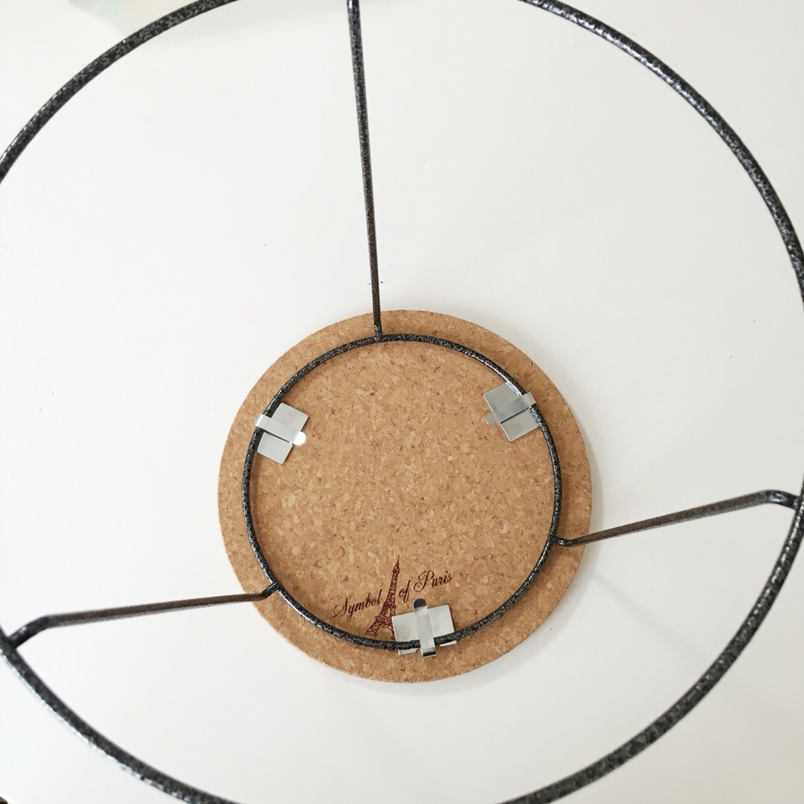 コルクと逆さまにしたフラワースタンドを、ケーブルフックで付けたら